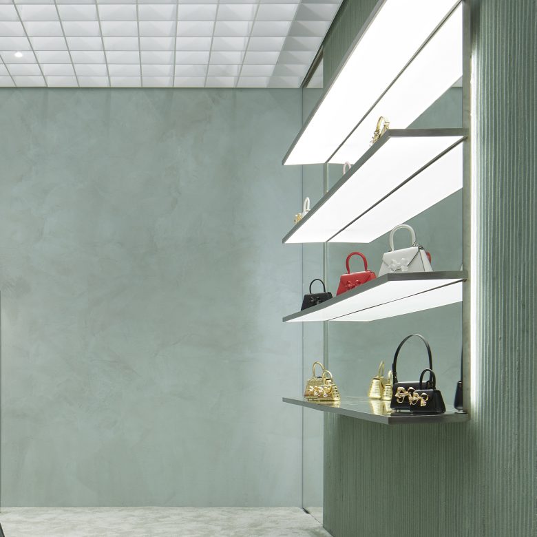 "우리는 미니멀리즘, 물질성 및 색상을 활용하여 일반적으로 소매 환경을 압도할 수 있는 방해나 시각적으로 방해가 되는 건축 품질 및 기능이 없는 친밀하고 감각적이며 집중된 경험을 만들고 싶었습니다."라고 Kostopoulos는 말했습니다.