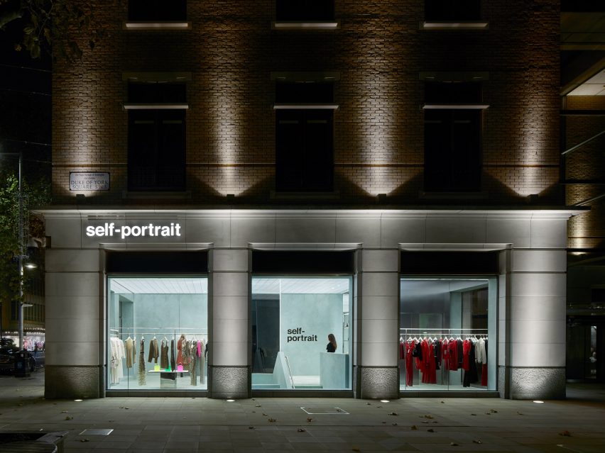 런던 첼시의 킹스 로드(Kings Road)와 듀크 오브 요크 스퀘어(Duke of York Square) 모퉁이에 위치한 200제곱미터 규모의 매장은 셀프 포트레이트(Self-Portrait) 창립자이자 크리에이티브 디렉터인 한 총(Han Chong)이 뉴욕 기반 건축가 안드레아스 코스토풀로스(Andreas Kostopoulos)와 협력하여 디자인했습니다.
